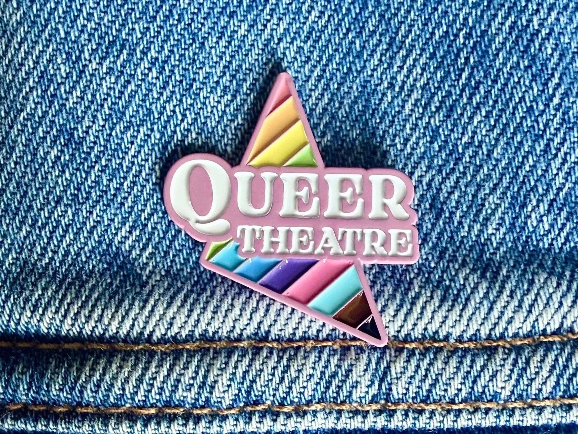 Whether you have joined us for an acting class, come along to the Queer Play Reading Club, taken part in an OutCast showcase, attended the podcast, or supported any of our other events, this pin badge is a simple way to carry Queer Theatre with you and stand proudly with our mission to tell LGBTQ+ stories and nurture queer talent.